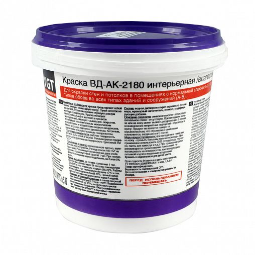 ВГТ Краска ВД-АК-1180 интерьерная моющаяся база А (автоколерование)(1.5л) 2.5кг 4шт